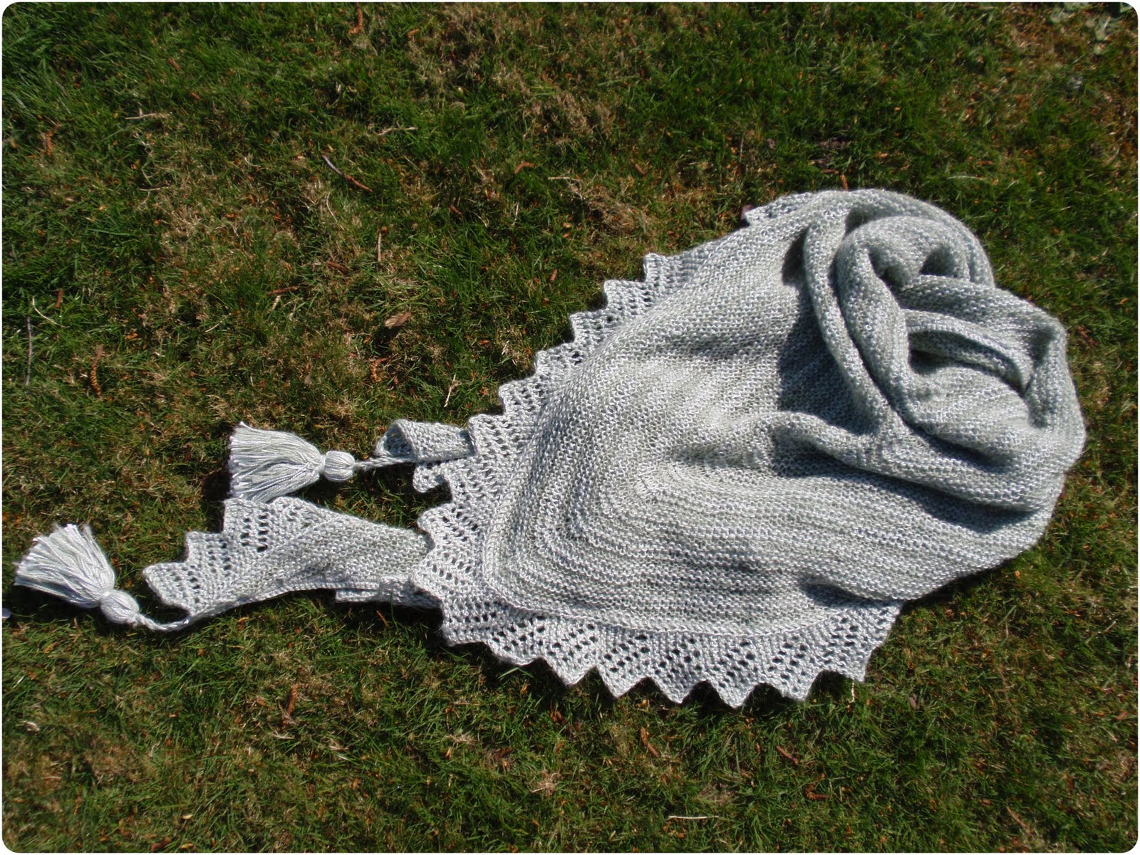 Så blev det min tur til at få mit Camomille-sjal færdigt. Det har været et godt tv-strikke-projekt, og for mig var det helt nyt at strikke kant på den måde, men i hvert fald ikke sidste gang.