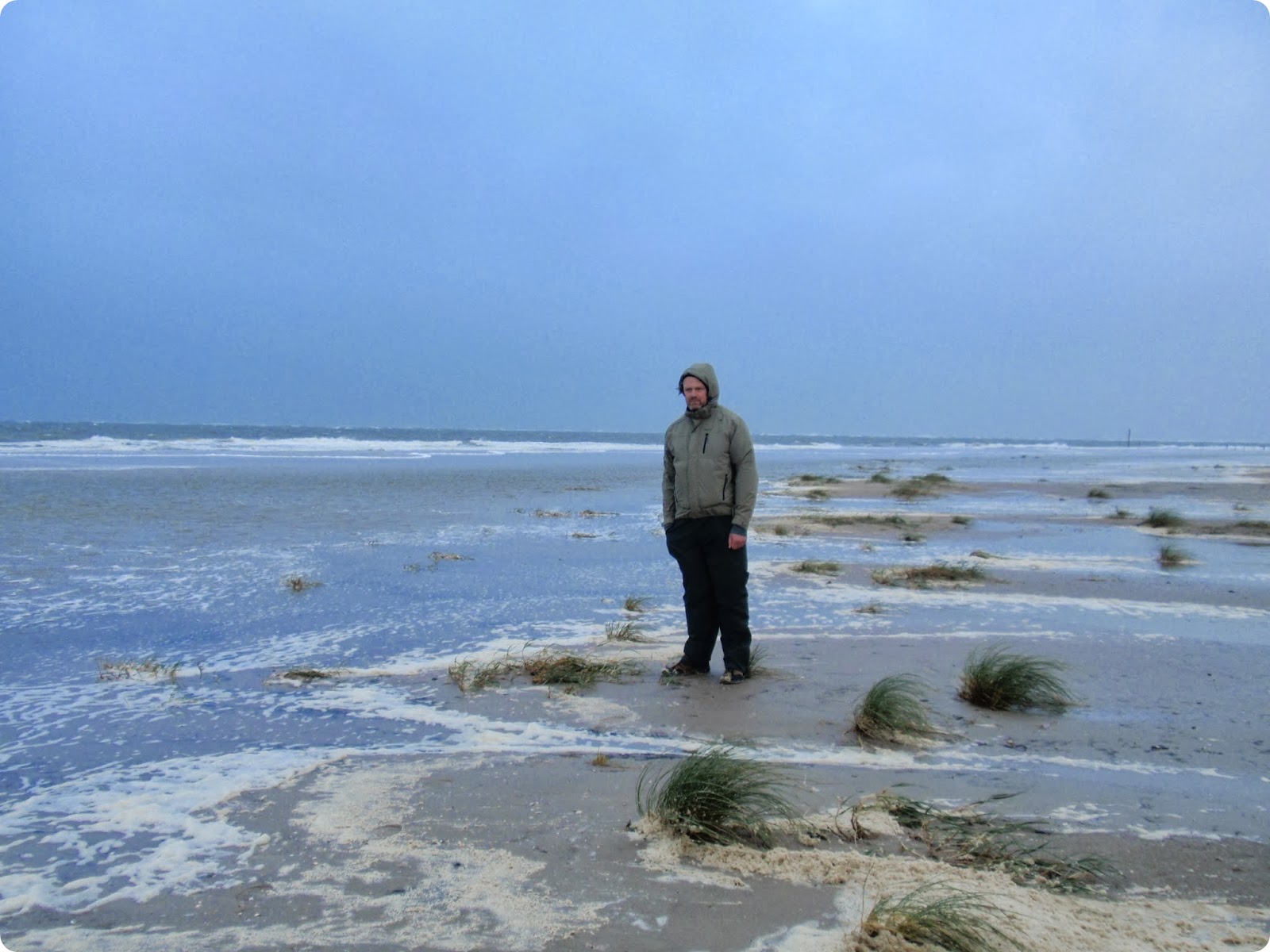 Men jeg skal lige love for at det blev det. Pludselig gik orkanen i land og alt stod i et. Det var umuligt at tage billeder. Det føg om ørene med sand, barkflis og meget andet, så vi smuttede ned i bilen og kørte tilbage til sommerhuset, som heldigvis lå i læ.